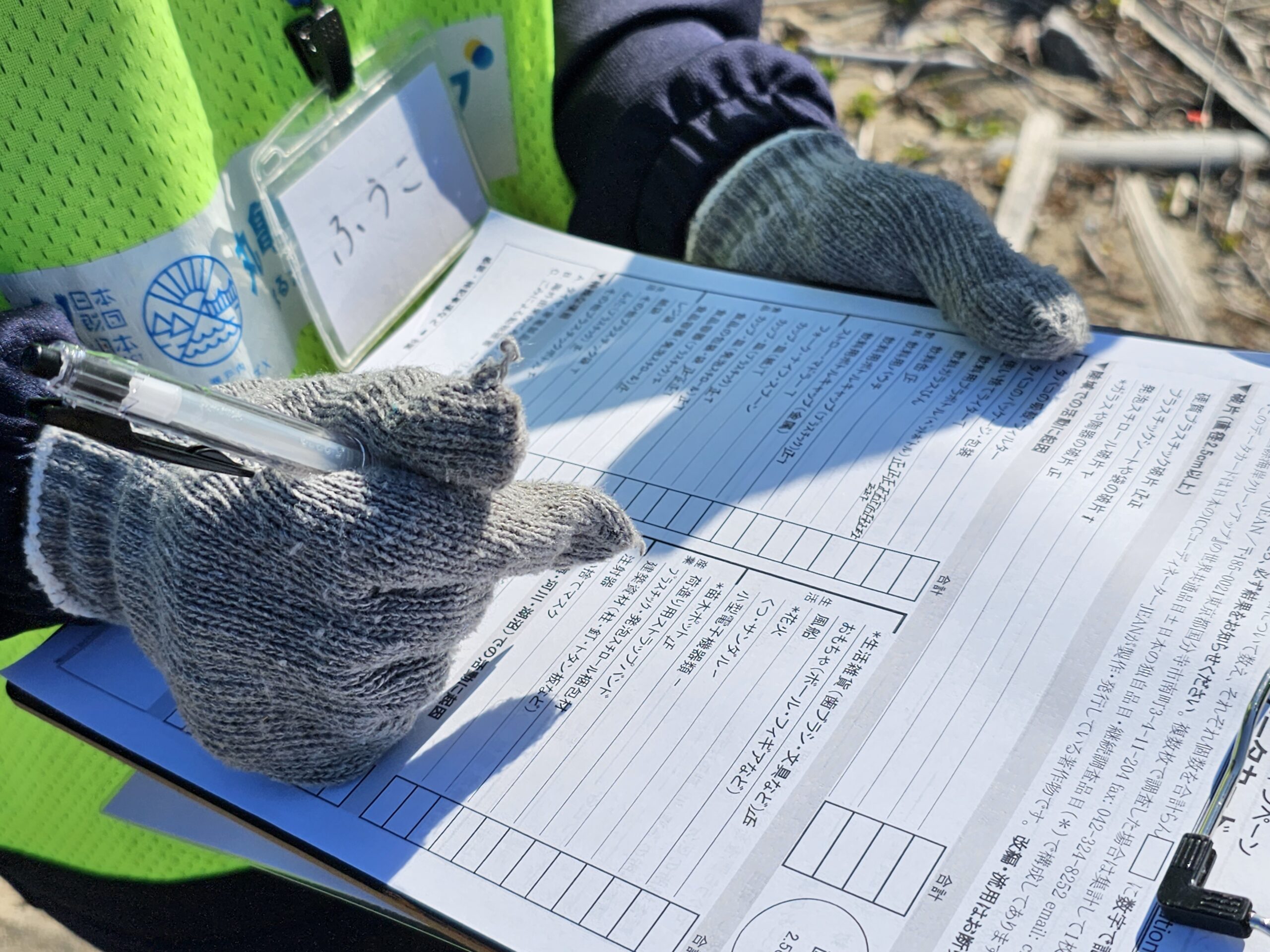 ICC(※)調査カードを手に、参加者同士で「何がどれだけ落ちているのか」を丁寧に記録していきます。